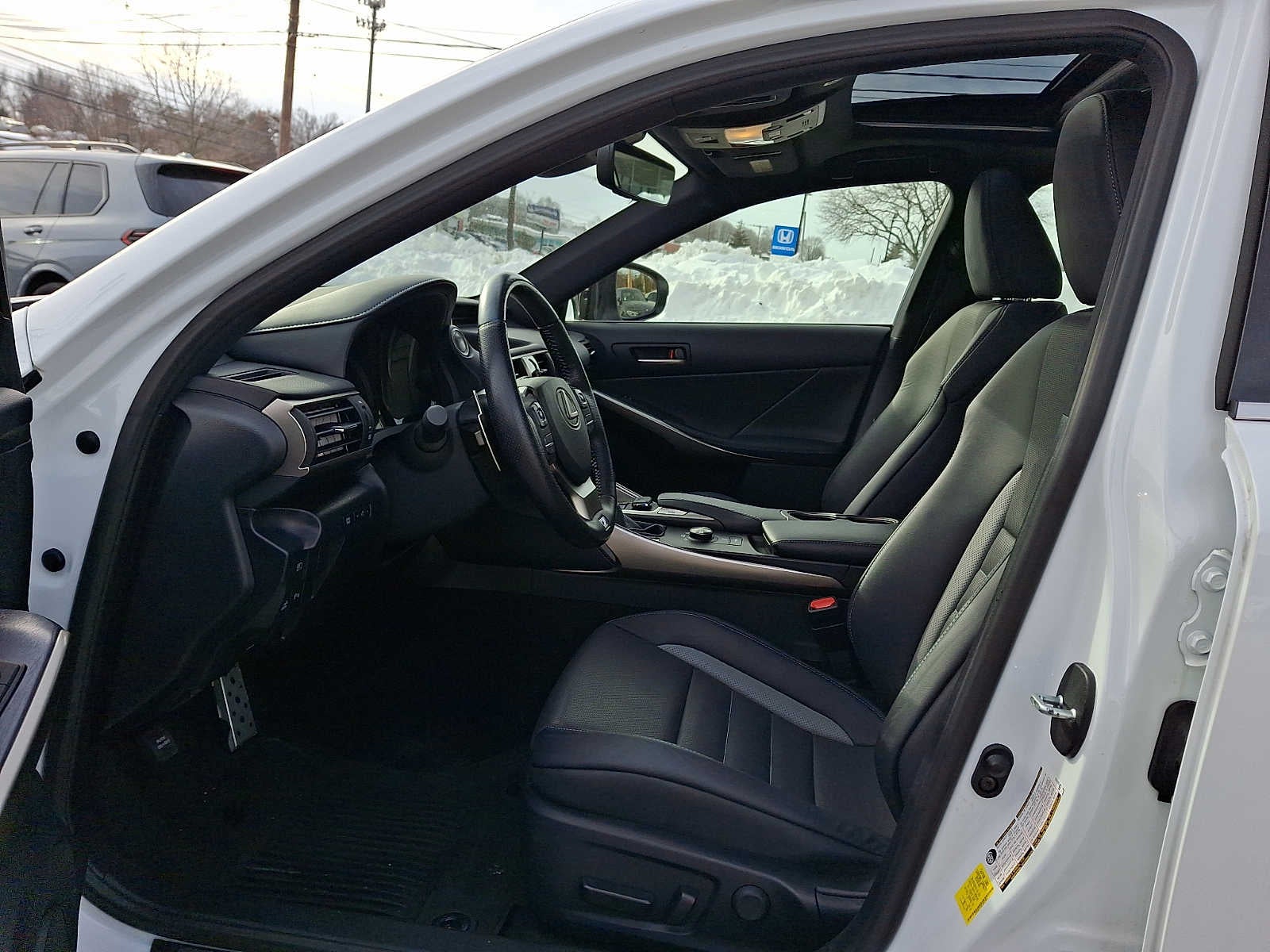 BLACKLINE EDITION Heated Sport Steering Wheel in Bluewood, Locking Glove Box, NAVIGATION PACKAGE Lexus Enform Destinations, destination assist and eDestination ( included, requires Lexus Enform Safety Connect), Lexus Insider, Lexus Enform App Suite (Subscription Free), destination search, Yelp, iHeartRadio, Facebook Places, Movietickets.com, OpenTable, Pandora, Slacker, stocks, fuel prices and sports, Radio: AM/FM w/Remote Touch, 10.3 high resolution split screen multimedia display, TRIPLE-BEAM HEADLAMPS, INTUITIVE PARK ASSIST clearance and back sonar, REAR SPOILER, ACCESSORY PACKAGE Carpet Trunk Mat, Key Gloves, Alloy Wheel Locks, Cargo Net. Lexus IS 300 F SPORT with Ultra White exterior and BLACK WITH BLUE 20MY SE (F-SPORT) interior features a V6 Cylinder Engine with 260 HP at 6600 RPM*.