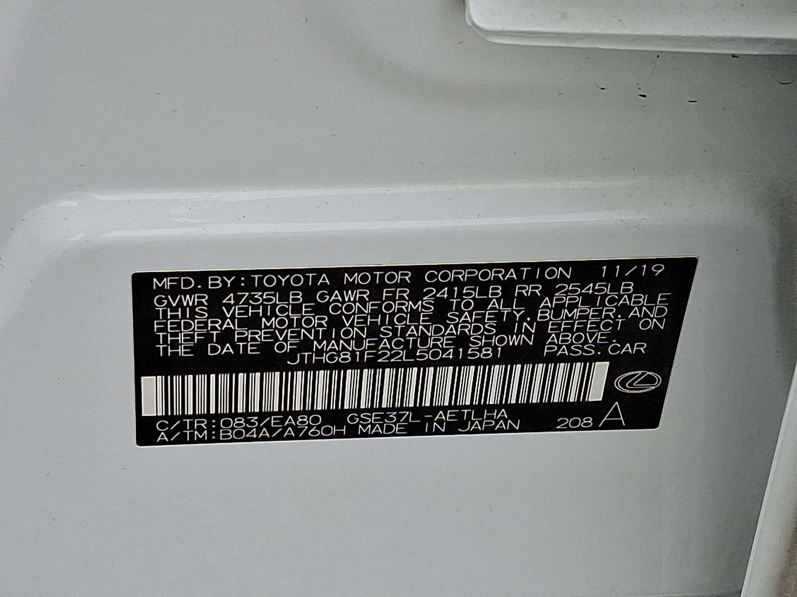 - Vehicle Name: Lexus IS